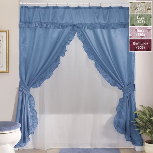- Blue Double Swag Fabric Shower Curtain Set with Ma...